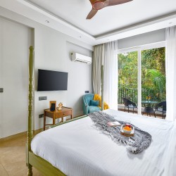 Set in the peaceful and serene Anjuna area, this 3 BHK private pool villa in Goa is an idyllic escape from the chaos of city life. The villa offers spacious bedrooms, a private pool, and luxurious amenities to ensure a comfortable stay. Enjoy the lush greenery, nearby attractions, and daily housekeeping services for a stress-free vacation.
